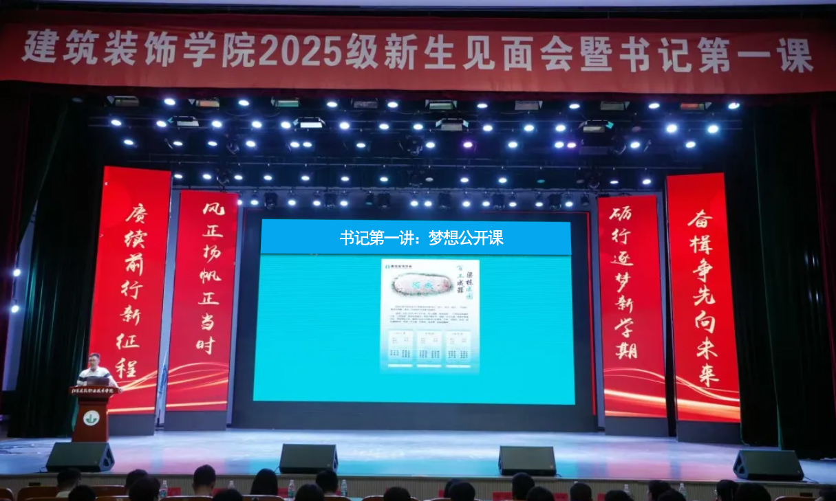 9月15日,建筑装饰学院新生见面会暨梦想公开课在会堂隆重召开。学院新生满怀憧憬齐聚于此,以青春之志共同开启大学新篇章。建筑装饰学院党总支书记娄志刚为2025级新生讲授了庄严而温暖的“梦想公开课”。