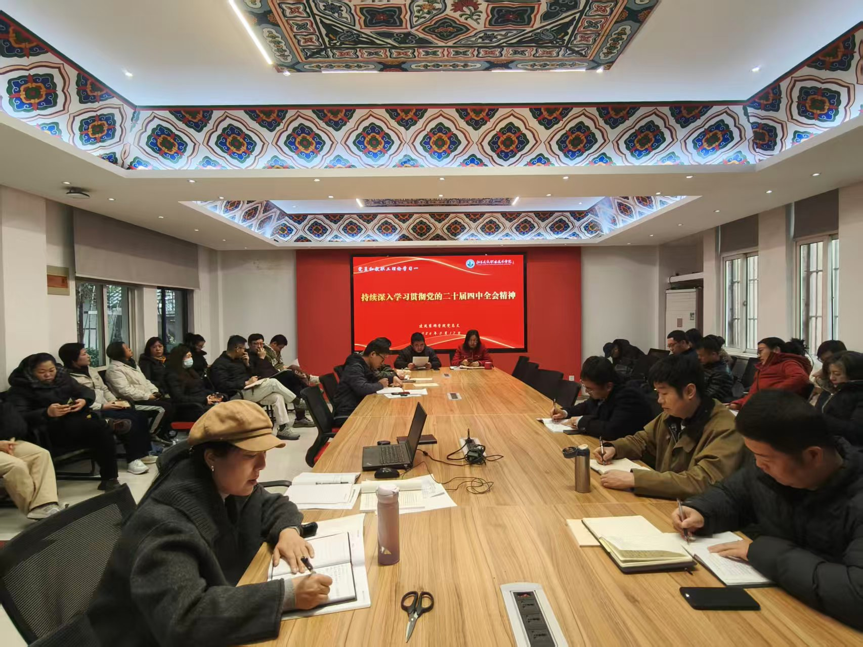 2026年3月17日,我院组织专题学习——持续深入学习贯彻党的二十届四中全会精神,学院党总支书记王正扬主讲,学院全体教职工参加学习。