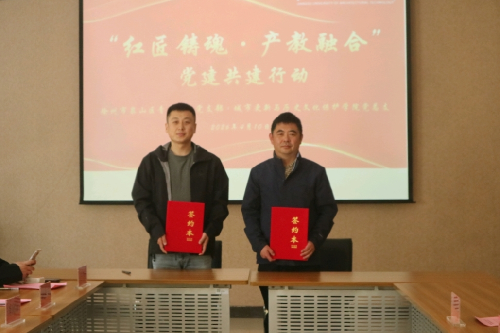 2026年4月10日下午,“红匠铸魂·产教融合”校商协同育人党建共建签约仪式在江苏建筑职业技术大学城市更新与历史文化保护学院顺利举行。学院党总支书记王正扬及教师代表,与徐州市泉山区青年商会会长丁一、党支部书记胡鹏程及多位青年企业家共同出席。仪式由学院古建专业群教工党支部书记于琍主持,学院党总支书记王正扬与商会会长丁一分别致辞并作为代表签约,旨在通过组织共建、活动共联、资源共享、人才共育,构建党建引领下的校企合作新平台,推动产教深度融合。