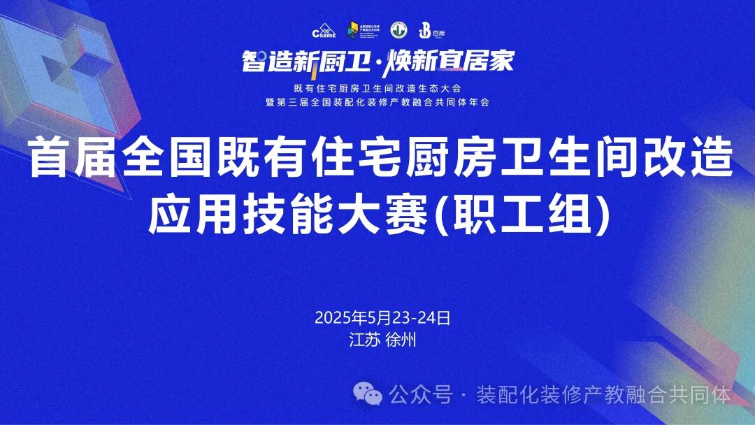 5月23日至24日,首届“全国既有住宅厨房卫生间改造应用技能大赛(职工组)”决赛在江苏建筑职业技术学院成功举办!本次大赛由中国建材工业经济研究会指导,中国建材工业经济研究会装配式建筑和绿色发展分会、全国装配化装修产教融合共同体主办,江苏建筑职业技术学院和山东百库科技信息有限公司承办,大赛以“智造新厨卫·焕新宜居家”为主题,聚焦国家城市更新政策突出厨卫改造痛点,通过创新技术、低碳材料、绿色实践,推动厨卫空间功能优化与绿色低碳技术应用。