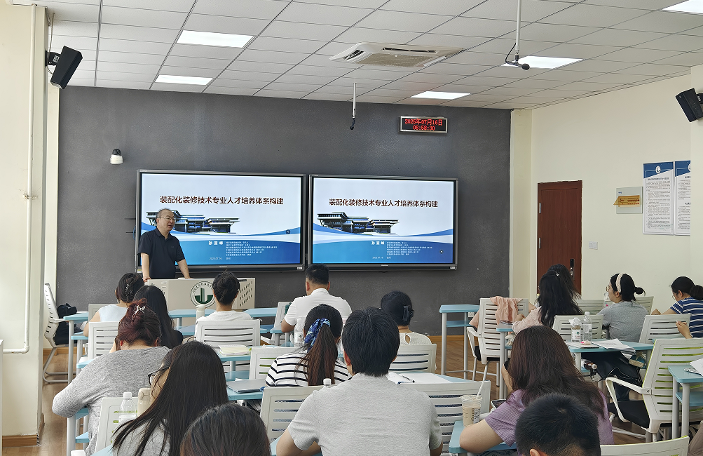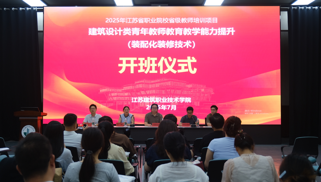 7月14日-20日,2025年江苏省职业院校教师培训项目“建筑设计类青年教师教育教学能力提升研修班(装配化装修技术)”在江苏建筑职业技术学院成功举办。7月14日上午,举办了隆重的开班仪式,江苏建筑职业技术学院党委委员、副校长刘海波出席开班仪式并致辞,建筑装饰学院领导班子成员以及全体参培教师参加了开班仪式。