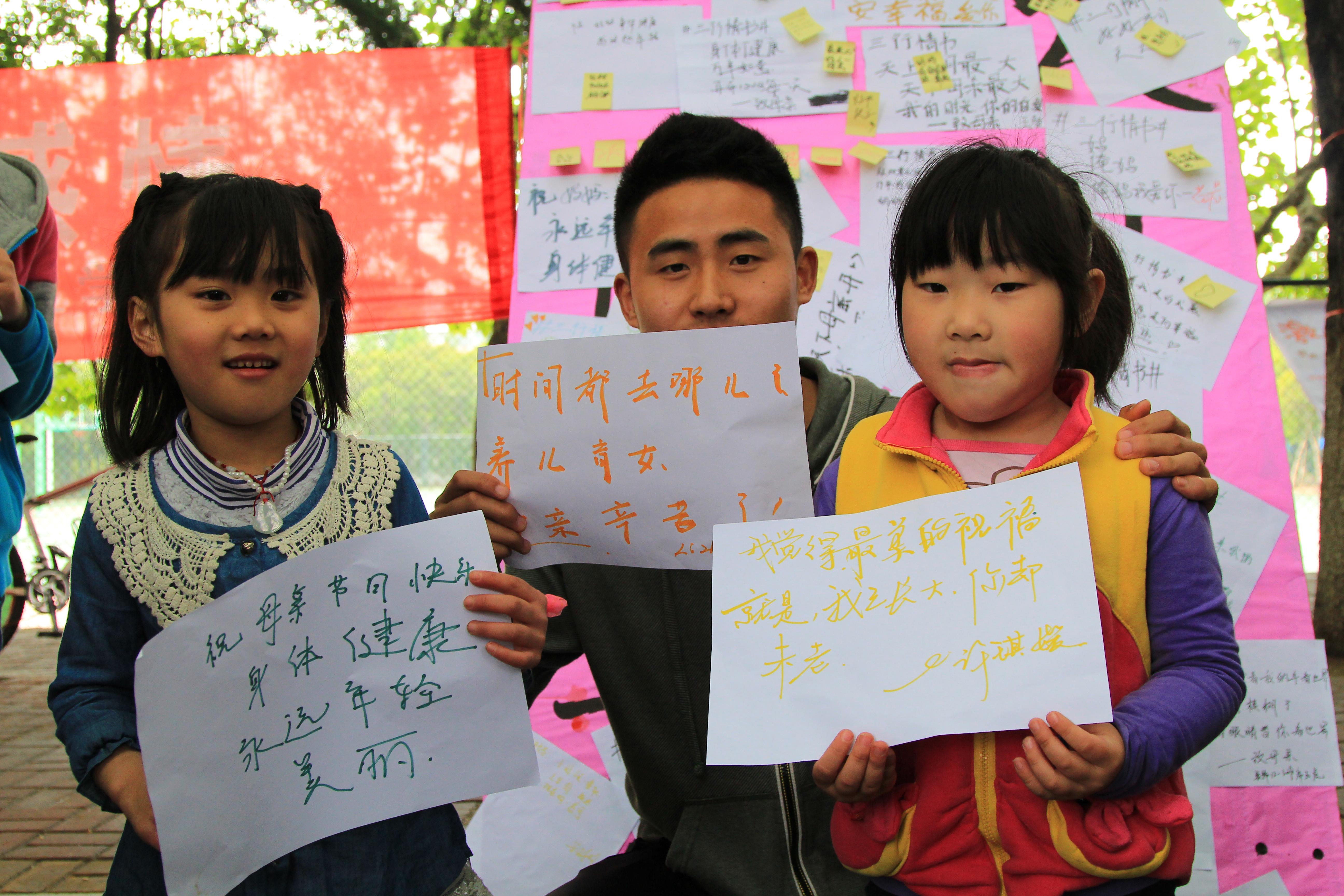 活动现场挂出两条宣传横幅,摆出两块展板,展板供学生张贴对母亲真情祝福,以及播放了与母亲节相关的音乐,活跃现场氛围。10点多活动一开始,路过的众多学子纷纷驻足,写下内心的祝福,甚至有的闻讯后专门结伴而来,写下母亲的三行情书。中午时分,就餐的学生情意浓浓的歌声与众多学子围观的吸引下,纷纷驻足写下祝福,活动现场热闹。“二十年的等待与相伴 / 空洞了瞳孔,画老了容颜 / 唯一不变的是那颗伴我成长的心————致母亲”。现场的一位学生这样写到。